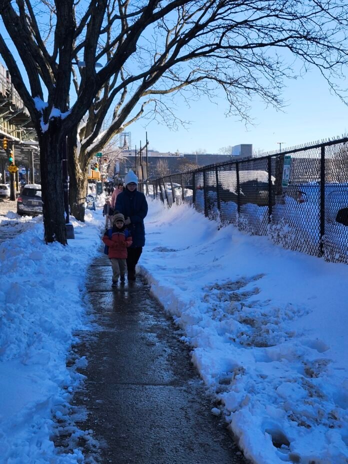 Mientras los equipos trabajaron durante la noche para limpiar la nieve de los terrenos de la escuela, y el DSNY ha estado limpiando las calles de la ciudad, llegar a la escuela de manera segura sigue siendo el problema principal.