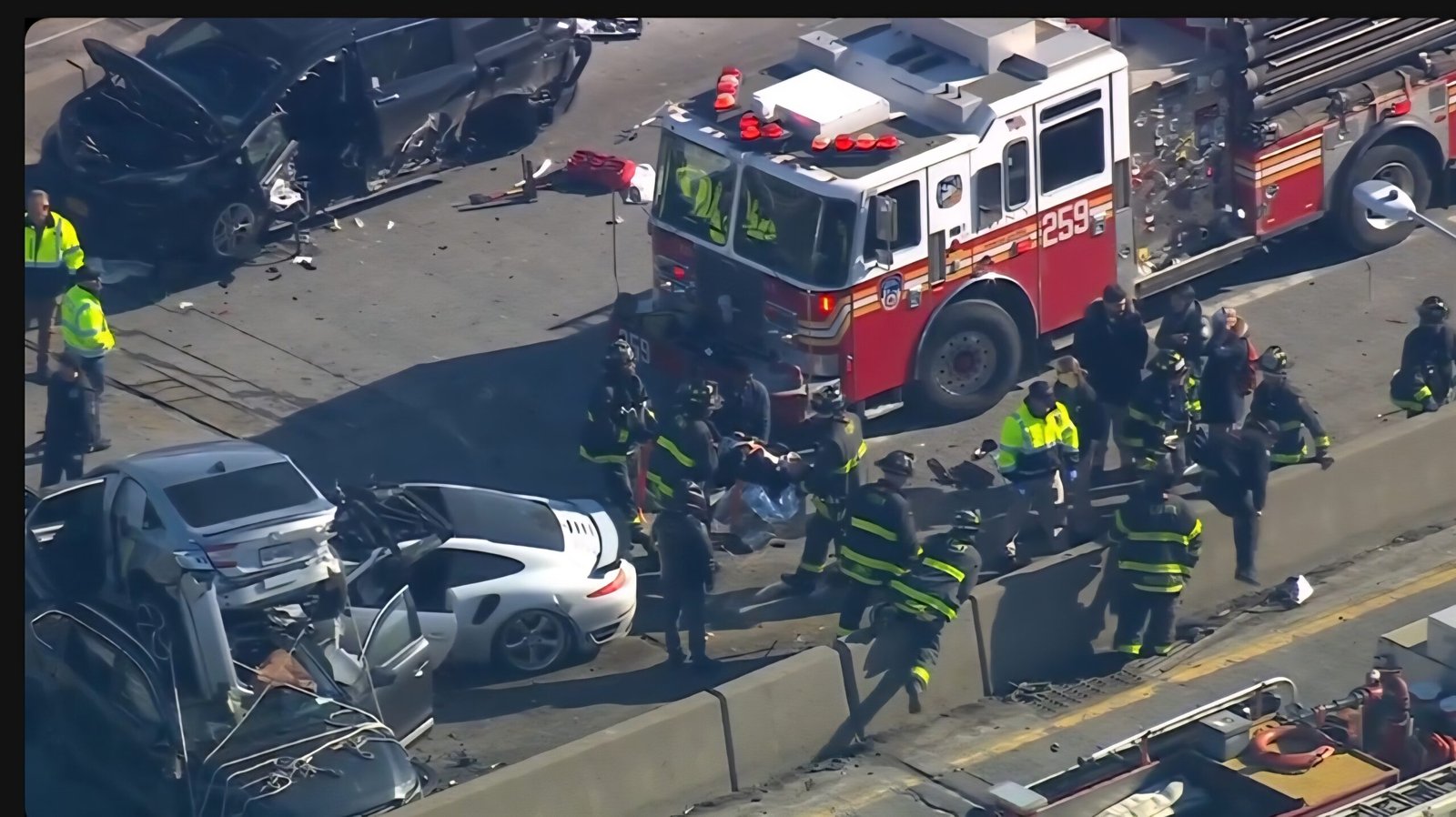 Según el Departamento de Bomberos de Nueva York (FDNY), al menos cuatro personas resultaron heridas en el accidente, una de ellas de gravedad. También al menos 9 vehículos habrían estado involucrados.