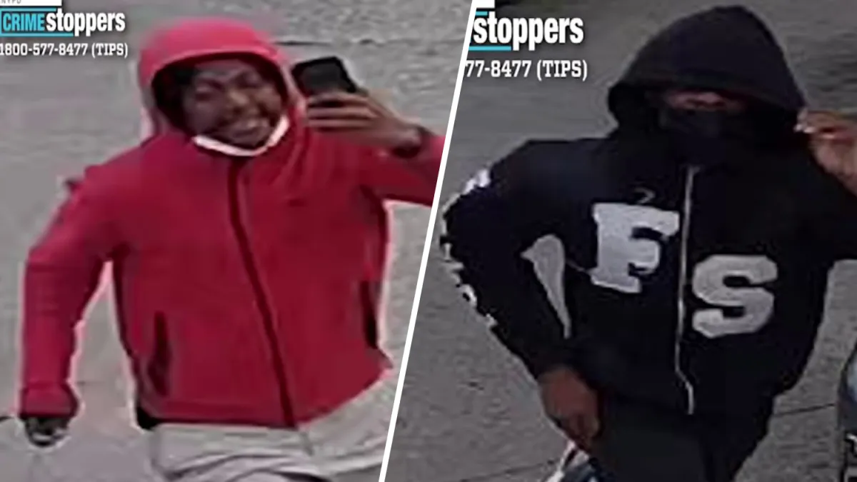 La policía informo que está buscando a los 2 sospechosos. Uno vestía ese día una sudadera roja, pantalones deportivos grises y botas beige. El otro, fue visto con una sudadera negra, pantalones deportivos negros y zapatillas deportivas blancas y negras.