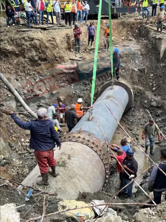 Mediante un comunicado la entidad indicó que durante la madrugada fue extraído el tramo de tubería averiado y actualmente se trabaja en la confección de los dos acoples del tramo de la parte afectada.