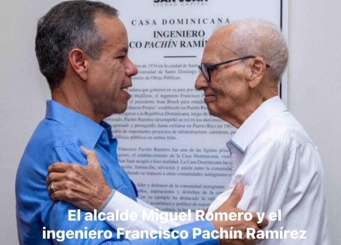 SAN JUAN.- El alcalde de San Juan, Miguel Romero, designó con el nombre del ingeniero dominicano Francisco Pachín Ramírez la Casa Dominicana, en reconocimiento a su vasta trayectoria profesional, su liderazgo comunitario y sus más de seis décadas de aportes al desarrollo de Puerto Rico y la comunidad dominicana en la isla.