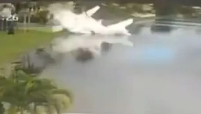 Un vídeo de vigilancia grabado en una casa cercana muestra cómo se vio al avión caer en picado al estanque de Coral Springs, un suburbio cerca de Fort Lauderdale .