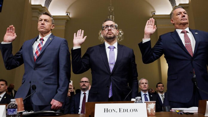 Lyons, director interino del Servicio de Inmigración y Control de Aduanas de EE. UU., Rodney Scott, quien dirige la Oficina de Aduanas y Protección Fronteriza de EE. UU., y Joseph Edlow, director del Servicio de Ciudadanía e Inmigración de EE. UU., hablaron ante el Comité de Seguridad Nacional de la Cámara de Representantes.