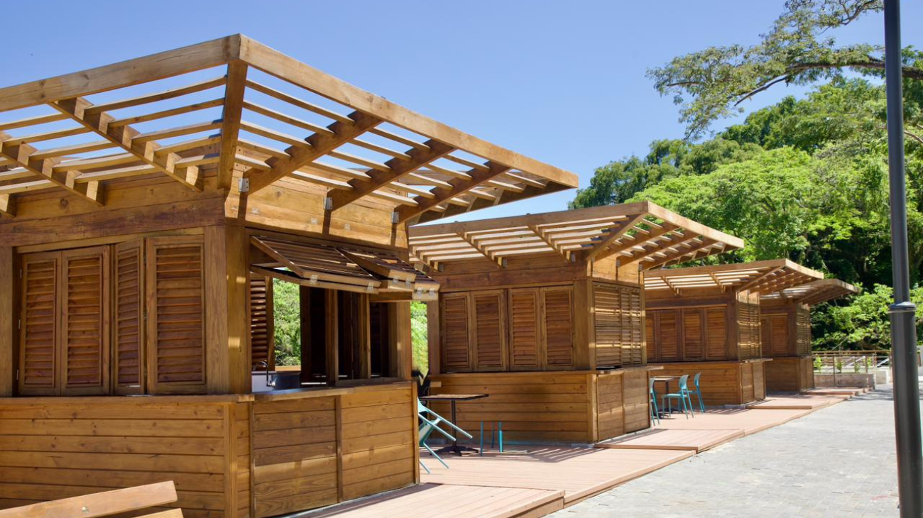 El proyecto incluye una moderna plaza con 79 locales comerciales distribuidos en siete niveles de terrazas sobre una superficie de 15,000 metros cuadrados. De estos, 57 están destinados a la preparación y venta de alimentos, 16 a artesanía y regalos, además de dos bares y cuatro quioscos.