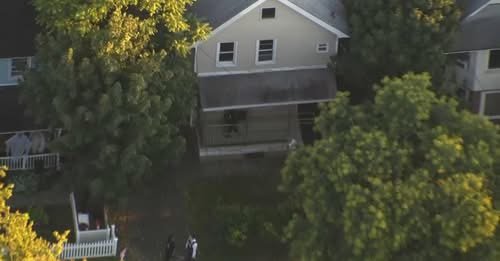 Los investigadores de la unidad de escena del crimen del Departamento de Policía de Nueva York retiran el cuerpo del padrastro de la casa de Staten Island.Kyle Mazza/Shutterstock
