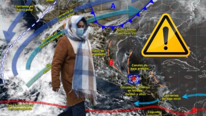 MEXICO.-La Comisión Nacional del Agua (Conagua) y el Servicio Meteorológico Nacional (SMN) advirtieron en el nuevo pronóstico del clima para el lunes 29 de diciembre un descenso marcado en las temperaturas que se desplaza por la entrada del Frente Frío 25, la masa de aire ártico y un evento norte dejando lluvias fuertes a muy fuertes y heladas en gran parte del territorio mexicano.