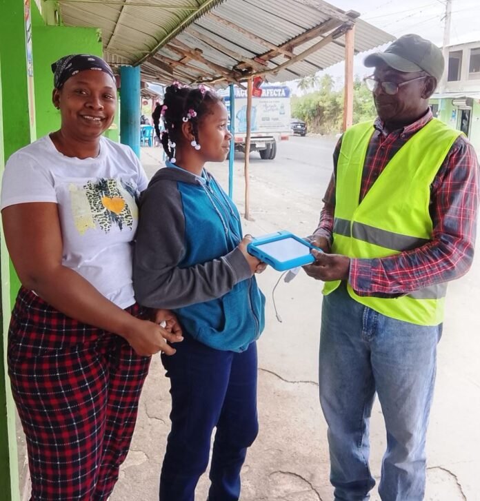 Los Bancos,Guanito,San Juan.-El señor Raúl Gerardo Ruiz, dirigente comunitario de la zona,entregó una moderna tablet a la niña Josely del Rosario Díaz,como reconocimiento a su entrega a los estudios y formación familiar.