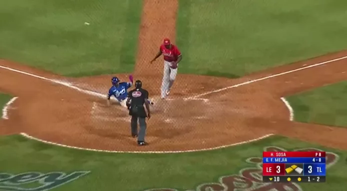 Luis De los Santos inició el décimo como corredor fantasma en segunda, pasando a tercera con toque de Pedro Severino al lanzador y anotando con sencillo de Junior Lake al central.