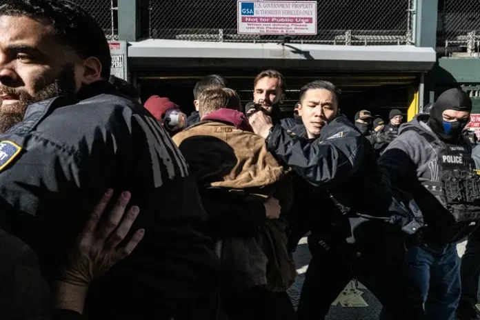 “Algunas personas fueron rociadas con gas pimienta al azar, otras fueron arrojadas al suelo violentamente. ¿Para qué? La ciudad de Nueva York ha sido una ciudad santuario durante décadas”, declaró Murad Awawdeh, director de la Coalición de Inmigración de Nueva York, en la manifestación del domingo. “Todo lo que la gente ama de la ciudad de Nueva York se debe a quienes la construyen”.