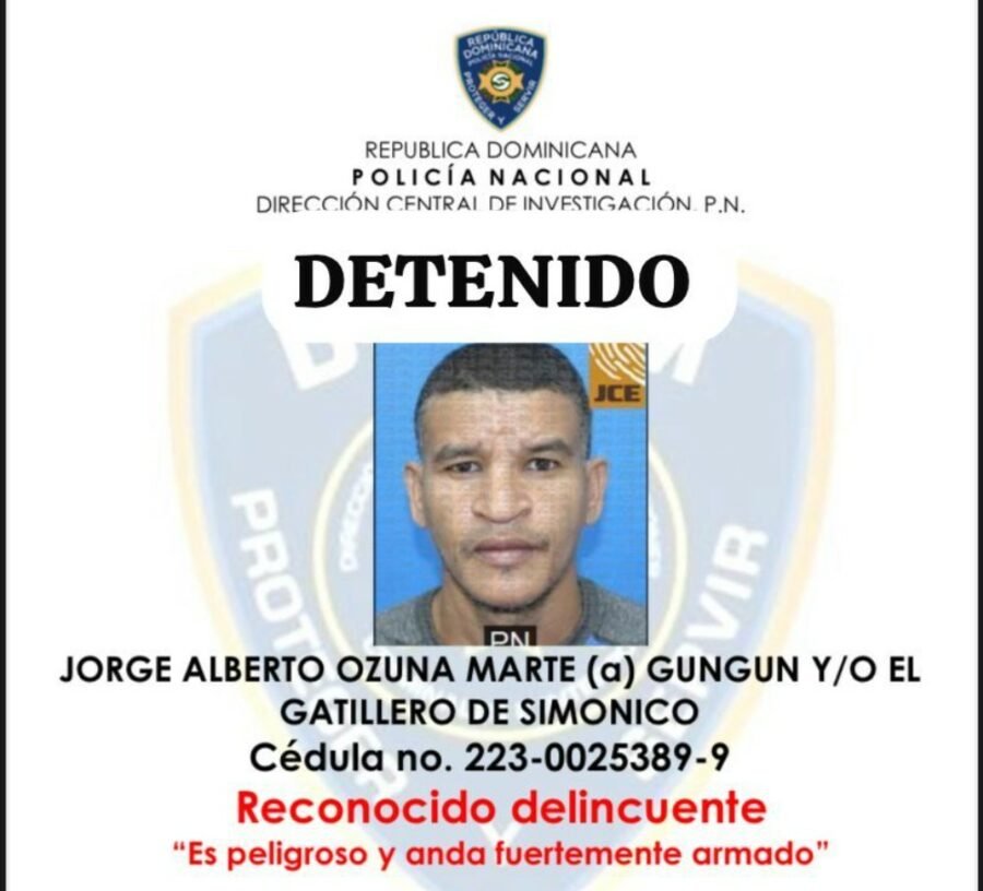 Se trata de Jorge Alberto Ozuna Marte (a) “Gungun”, de 41 años de edad, quien fue arrestado mediante la orden judicial No. 530-2025-EMES-03206, por su presunta implicación en la muerte del niño Josué Rodne, de 10 años, y de la señora María Mercedes Arias Amador, de 63, así como por las heridas de bala ocasionadas a Marie Benítez Rodne, de 47 años.