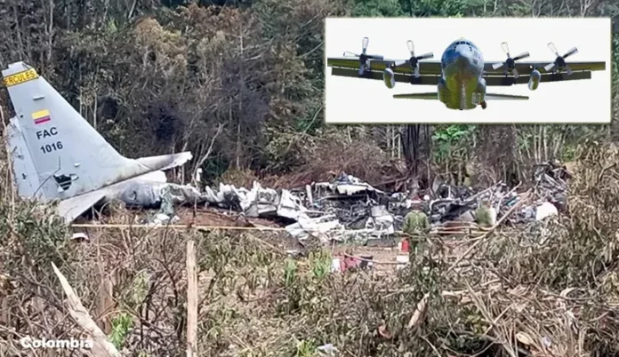 COLOMBIA.-La caída de un avión militar Hércules C-130 en el sur de Colombia dejó una escena devastadora y aún en desarrollo.