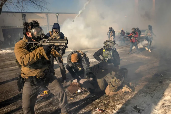 Imágenes desgarradoras compartidas en las redes sociales muestran un primer plano del incidente explosivo, que comenzó cuando manifestantes en la calle observaban cómo unos seis agentes federales empujaban al suelo a un hombre identificado posteriormente como Alex Jeffrey Pretti.